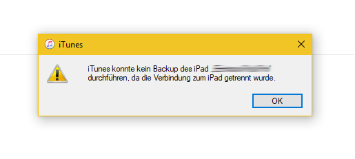 iPad Pro Backup nicht möglich (Verbindung getrennt)