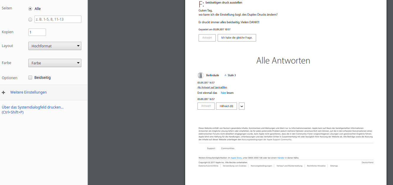 Ansonsten kannst du die Option meistens bevor du den "Drucken" - Button betätigst abhacken (siehe Screenshot - Optionen links/mittig) oder in den Eigenschaften des Druckfensters, falls du ein in Pages o.ä. erstelltes Dokument drucken willst.