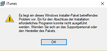 Ich kann iTunes nicht mehr installieren. Die Installation bricht immer ab, mit dem Hinweis, ein benötigtes Programm fehle. Ich habe Itunes deinstalliert und nochmals probiert, aber kein Erfolg. Jetzt kann ich also mein IPod nicht mehr nutzen!