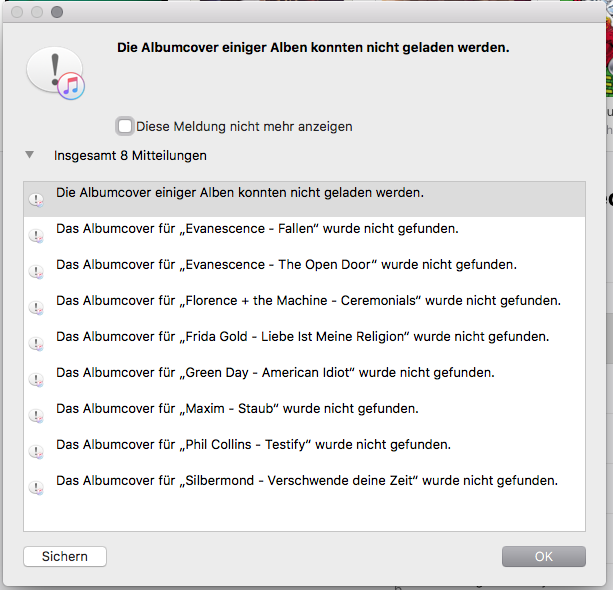 Es fehlen viele Titel aus unterschiedlichen Alben in auch manche Cover werden nicht angezeigt😒
