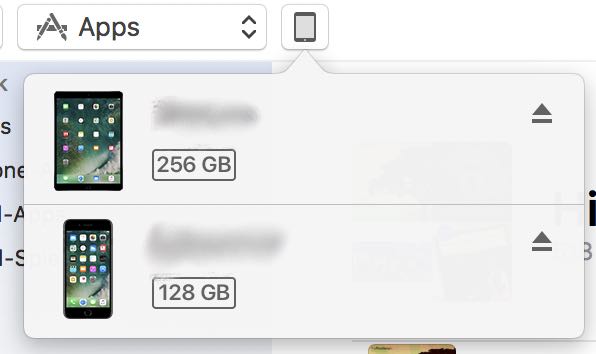 Es können mehrere Geräte über jeweils ein USB-Kabel angeschlossen werden. In iTunes kann das gewünschte Gerät über einen Klick auf das Geräte-Symbol ausgewählt werden.