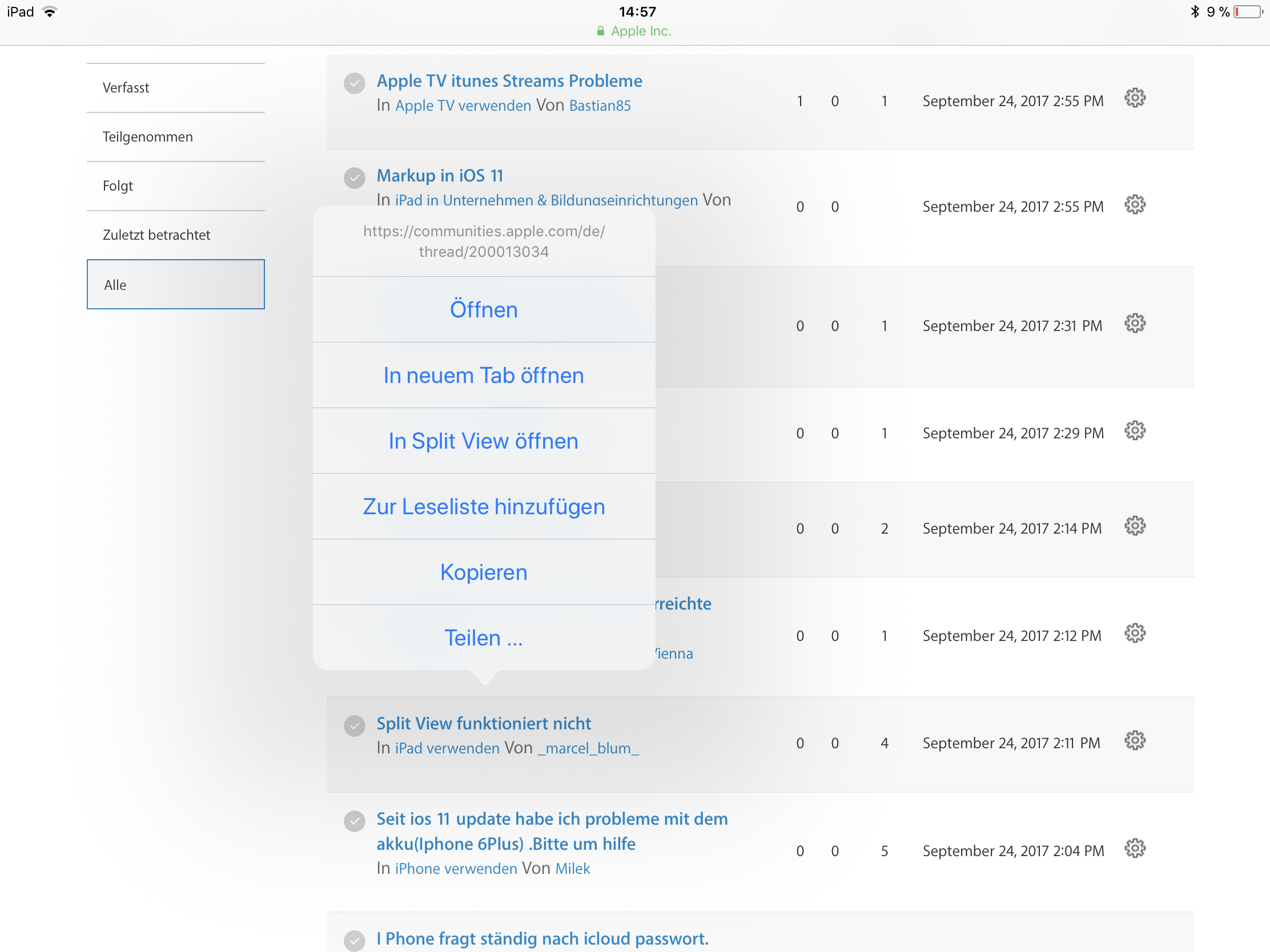 ich hoffe das ich auf diesem Wege Hilfe finde. Ich probiere es schon seit dem Update auf IOS 11 mit dem Split View auf meinem iPad Air 2. Leider bekomme ich dieses nicht ans laufen. Slide Over funktioniert bei mir ganz normal, aber sobald ich wie in der Anleitung auf den Balken oben in der App drucke und ihn halte funktioniert nichts. Aber in jedem Video wird es so erklärt. Auch in Safari wird mir keine Split View angezeigt.