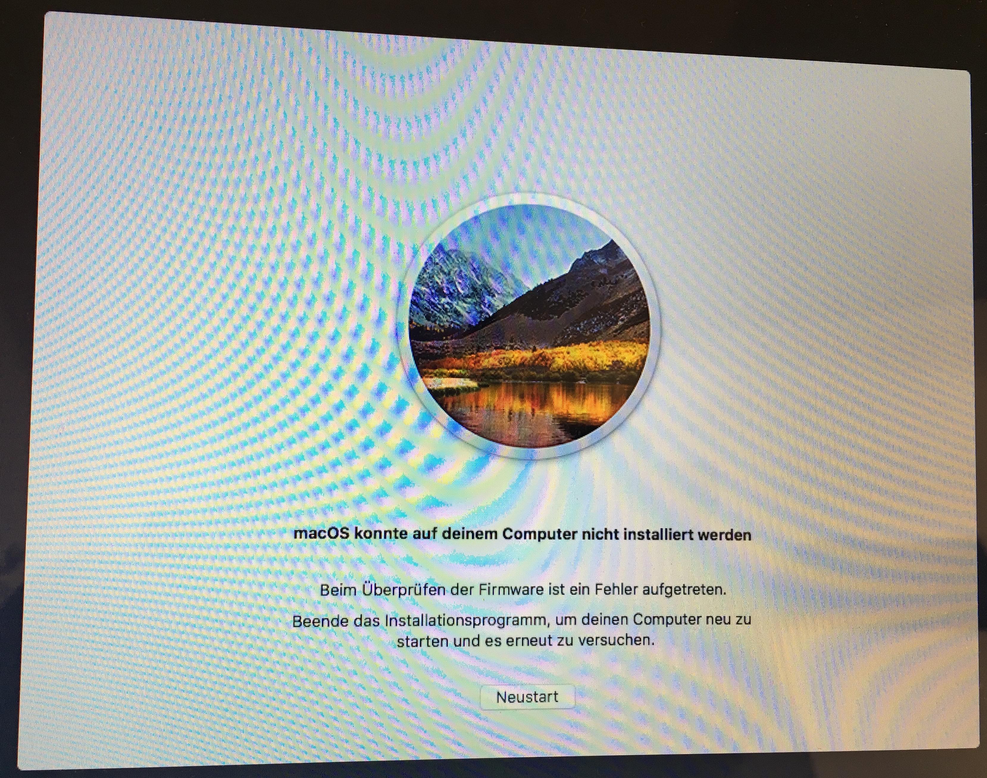 High Sierra Installation: Fehler beim Überprüfen der Firmware