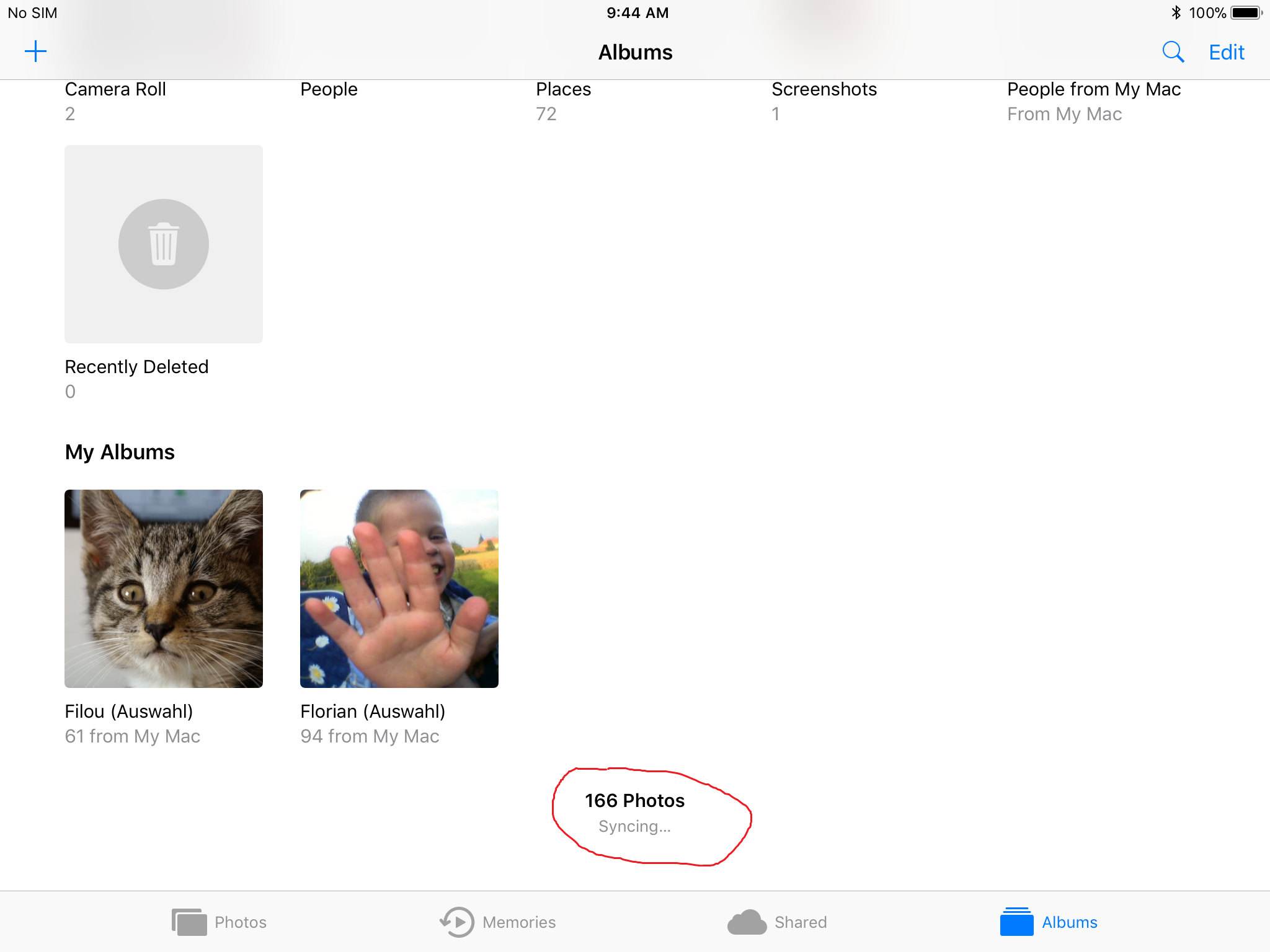 In Fotos auf dem iPad werden dann nur ein paar Bilder angezeigt und unter den Alben steht (Beispiel):