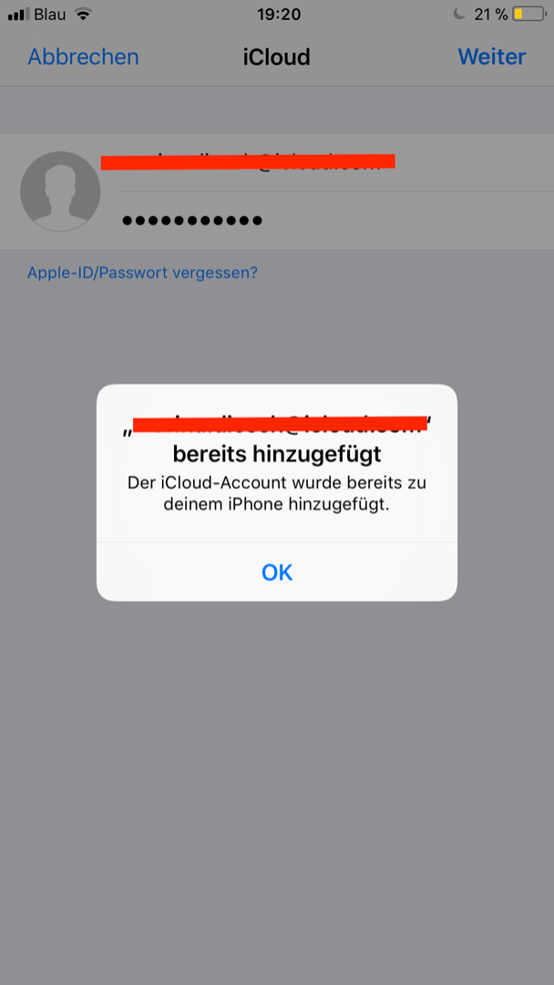 Ich habe das neue update gemacht und wurde aus meiner iCloud-Mail ausgeloggt.Wenn ich mich wieder einzuloggen will kommt immer so eine Meldung dass der iCloud Account eingeloggt ist ...aber wie komme ich zu meinem Mails -Bilder folgen