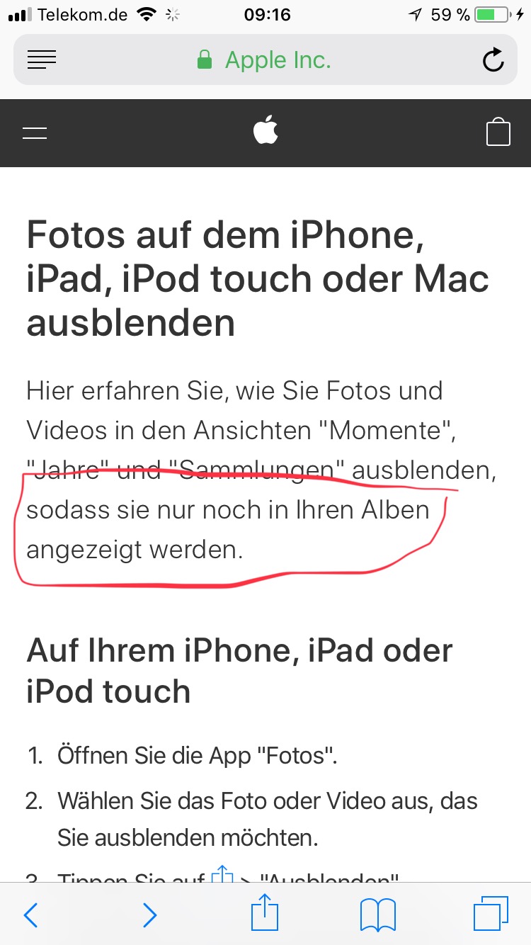 Warum werden die ausgeblendeten Fotos auch aus meinen extra angelegten Alben ausgeblendet? Angeblich sollten sie laut diesem Artikel doch dort weiterhin zu sehen sein! Stattdessen sind sie nur noch in unsortierter, zusammengefasster Form im Album „Ausgeblendet“ zu finden, das ist doch nicht zielführend. Welchen Sinn macht es, Ordnung zu schaffen über eigens angelegte Alben, wenn man ausgeblendete Fotos dann auch dort nicht mehr sieht? Ich blende sie ja aus den Fotos aus, weil sie in Alben abgelegt sind, und ich Redundanzen innerhalb der Ansichten vermeiden will.