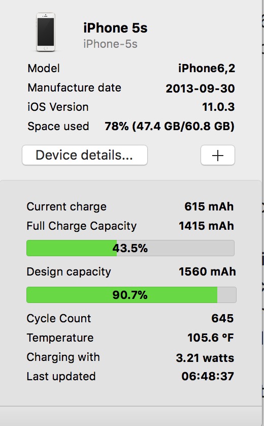 Hier noch ein paar Infos über meinen Akku im iPhone: