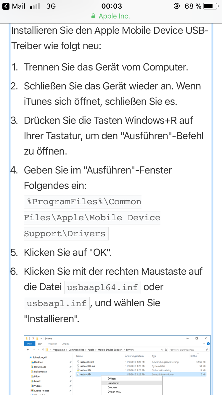 %ProgramFiles%\Common Files\Apple\Mobile Device Support\Driversusbaapl64.inf oder usbaapl.inf, und wählen Sie "Installieren".Wird es in Windows nicht angezeigt oder iTunes bzw hast du iTunes installiert ? Wenn ja welche Version? Nutzt du das selbe usb Kabel und USB Anschluss wie beim iPad? Hast du eine Hülle am iPhone?