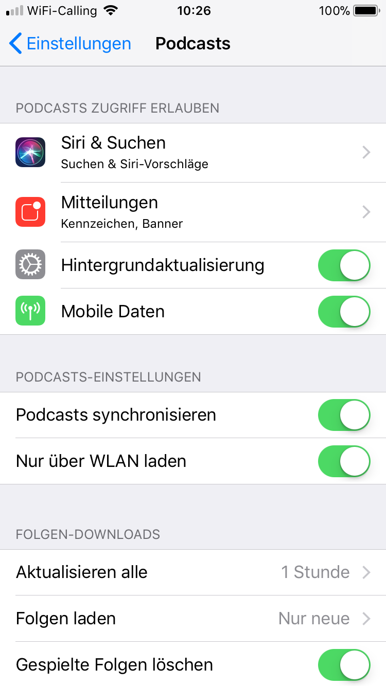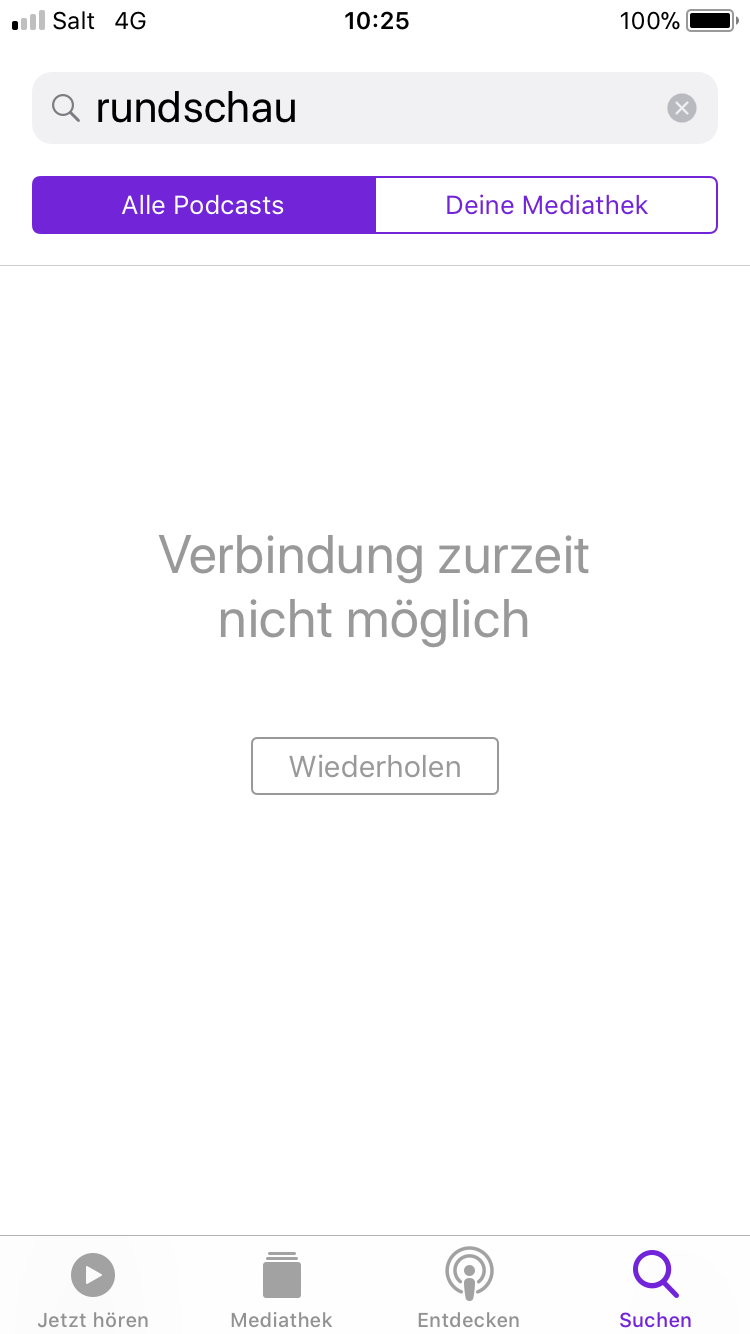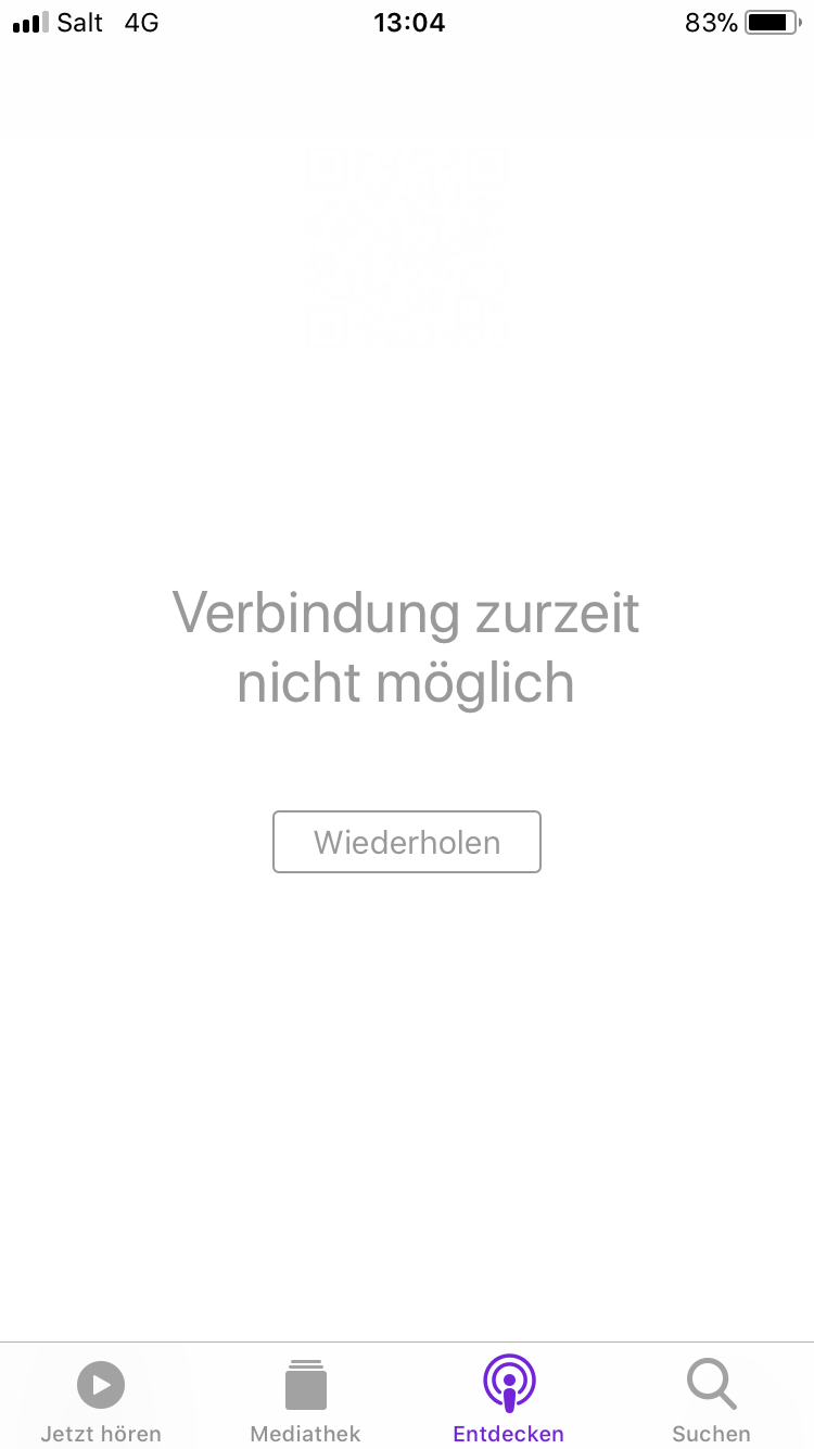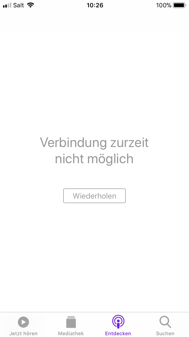 Podcast App: "Keine Verbindung mit dem Internet"