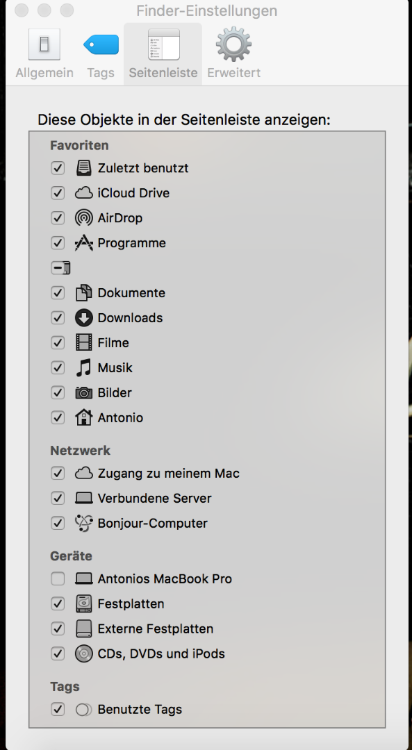 Hallo, seit einiger Zeit wird mir der Schreibtisch nicht mehr angezeigt und ich kann auch keine Sachen mehr auf ihm speichern (nicht per Drag and Drop, sondern "speichern unter" und dann den Ort auswählt). Es wird lediglich ein weißes leeres Blatt anstelle eines Desktops gezeigt. Hier ein Bild aus den Finder-Einstellungen. Vielen Dank im voraus