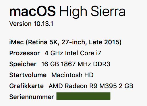 IMAC (RETINA 5K, 27-INCH, LATE 2015), macOS High Sierra (10.13.1)