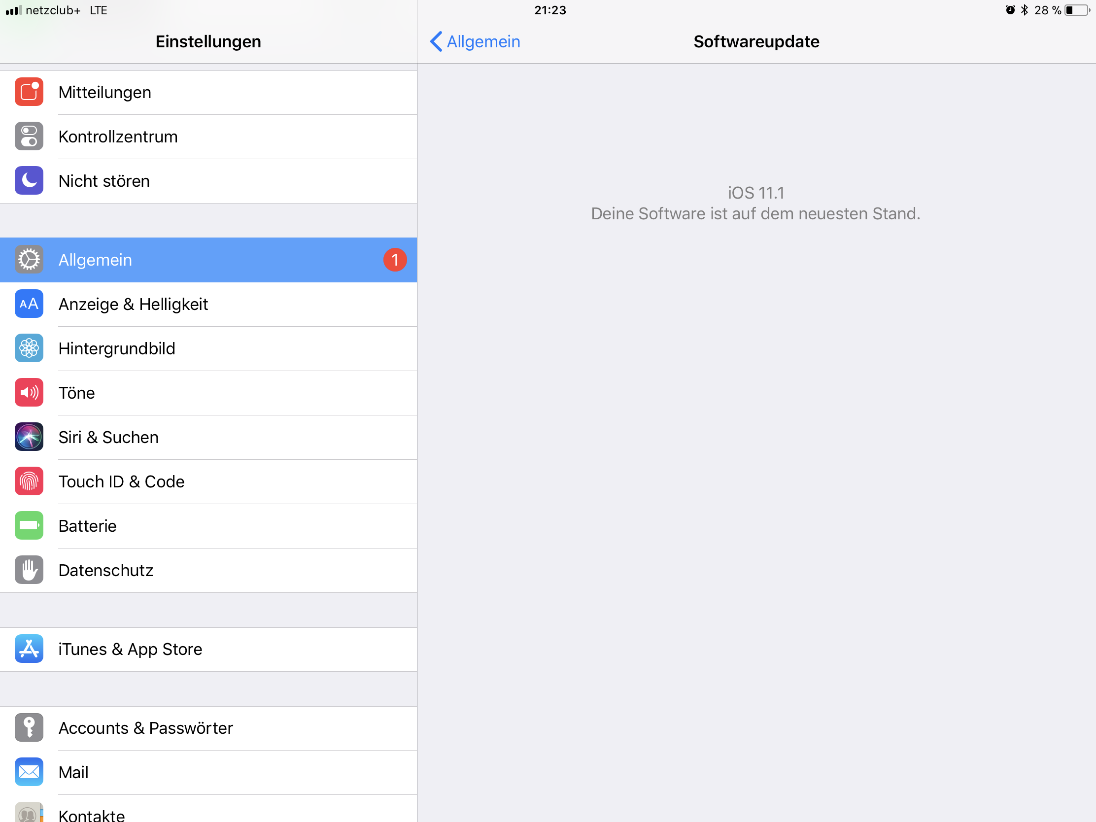 Sobald ich aber in den Einstellungen auf „Softwareupdate“ gehe, steht da: iOS 11.1 Deine Software ist auf dem neuesten Stand.