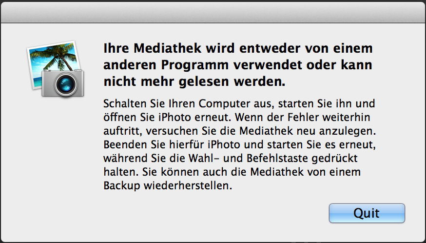 Ausschaltknopf gedrückt und seit dem anschliessenden Hochfahren ist iphoto leer - kein