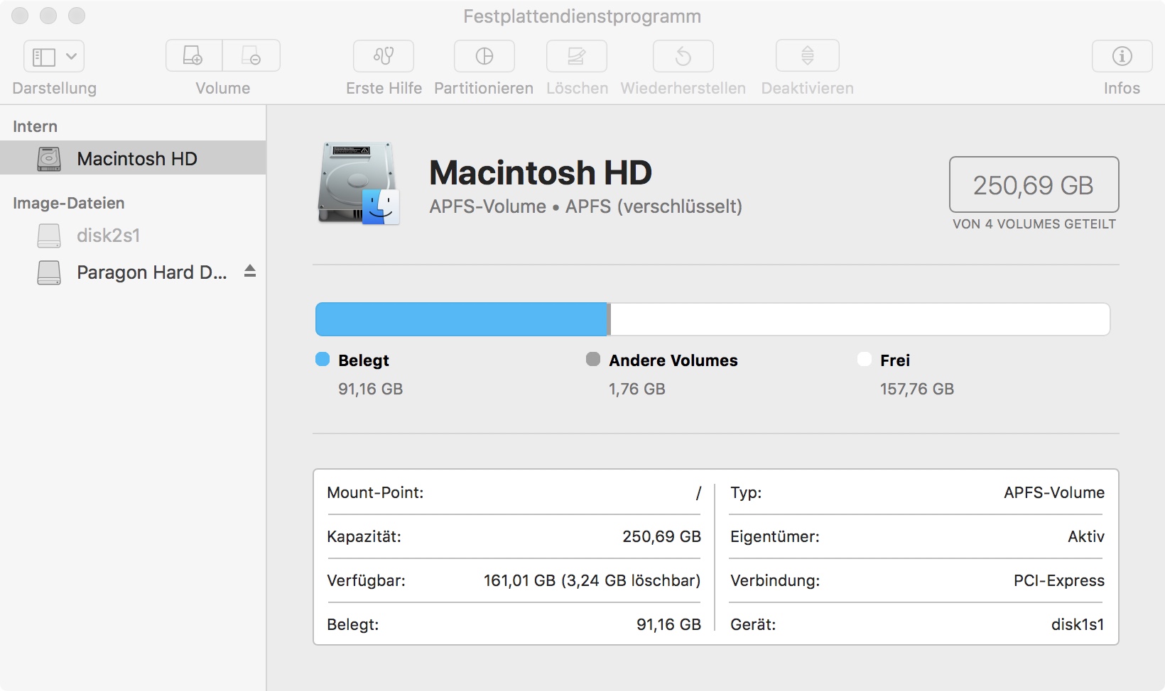 Das Festplattendienstprogramm zeigt zudem folgende Konfiguration