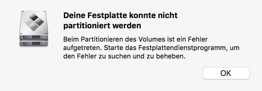 Beim Versuch eine Boot Camp Partition zu erstellen, erhalte ich folgende Fehlermeldung: