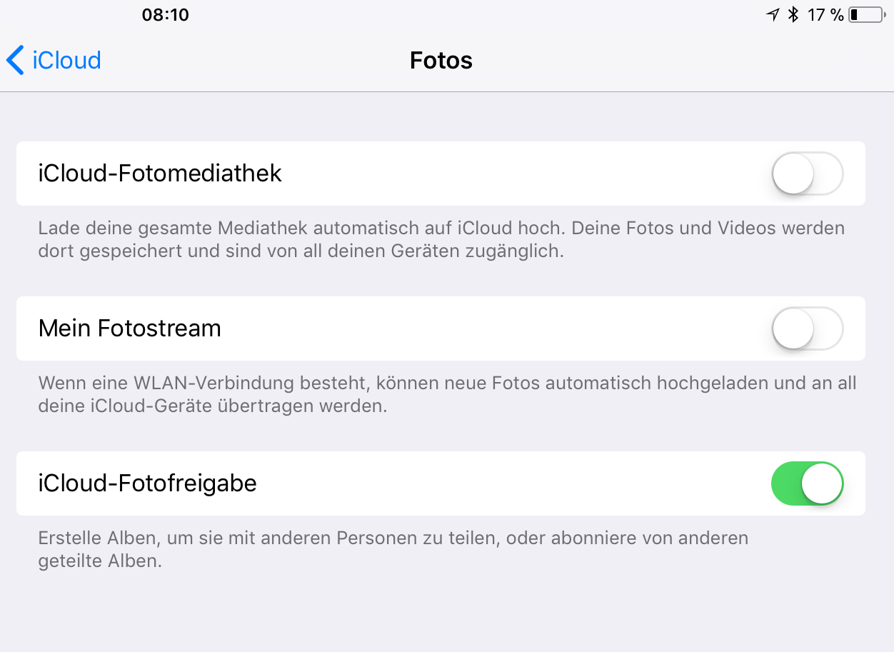 Fotos werden aus der iCloud am iPad nicht mehr synchronisiert. iPhone synchronisiert richtig.