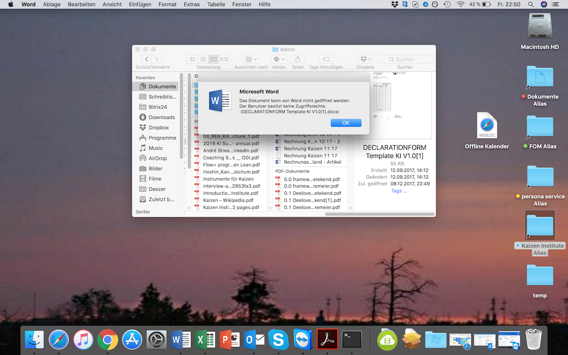 Vor einigen Tagen bekam ich das 13.01 update von OS angeboten, das habe ich durchgeführt. Danach hatte ich mehrere Probleme. Heute kam das 13.02 update, das habe ich auch durchgeführt. Damit sind die meisten Probleme gelöst. Aber mein Word geht immer noch nicht. Wenn ich versuche ein Dokument zu öffnen bekomme ich die Info das ich keine Zugangsrechte habe. Es handelt sich um meine Dokumente und alles ist auf rwrwrw gestellt. Kennt einer eine Lösung?