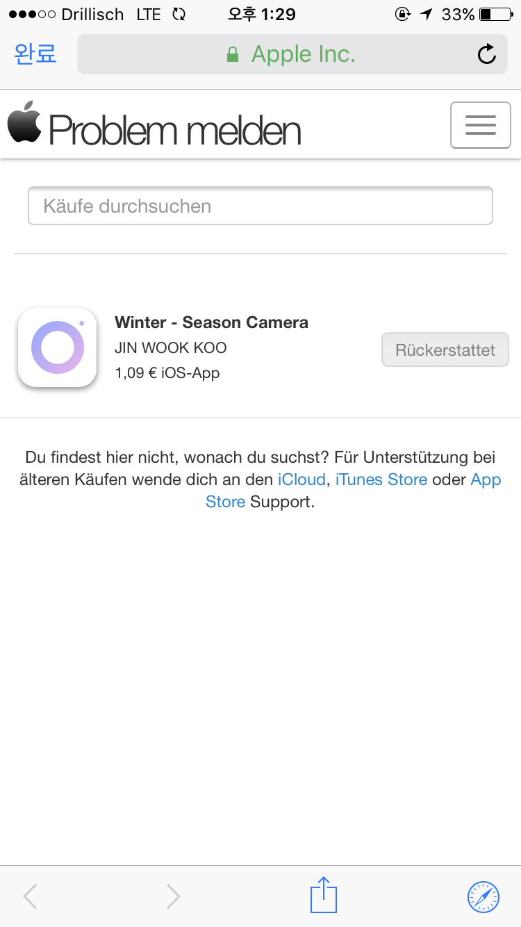 Sie können auch reportaproblem.apple.com verwenden, um Ihre Einkaufsstatistik und Belege einzusehen.