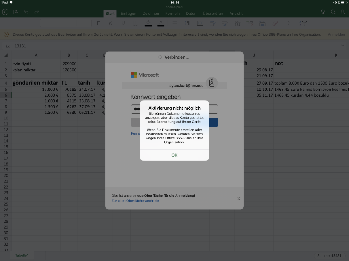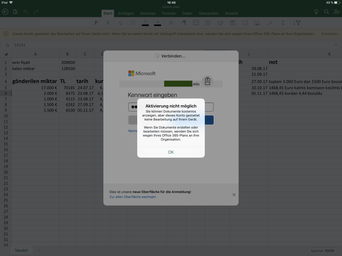 iPad Pro Office 365 Anmeldung nicht möglich mit
