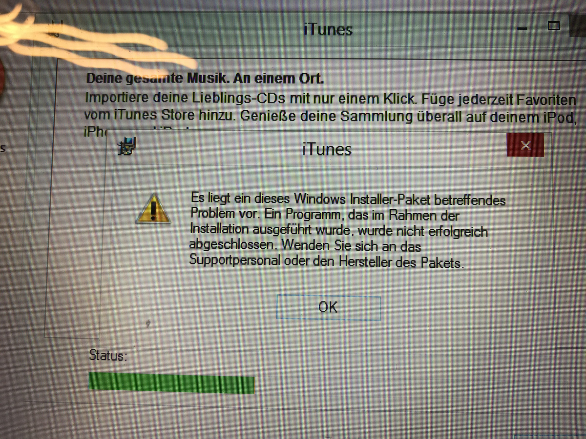 Nachdem iTunes kein Update mehr machen konnte habe ich das Programm deinstalliert und mir das Programm neu heruntergeladen. Jetzt wird die neue installation immer mit folgender Fehlermeldung beendet: