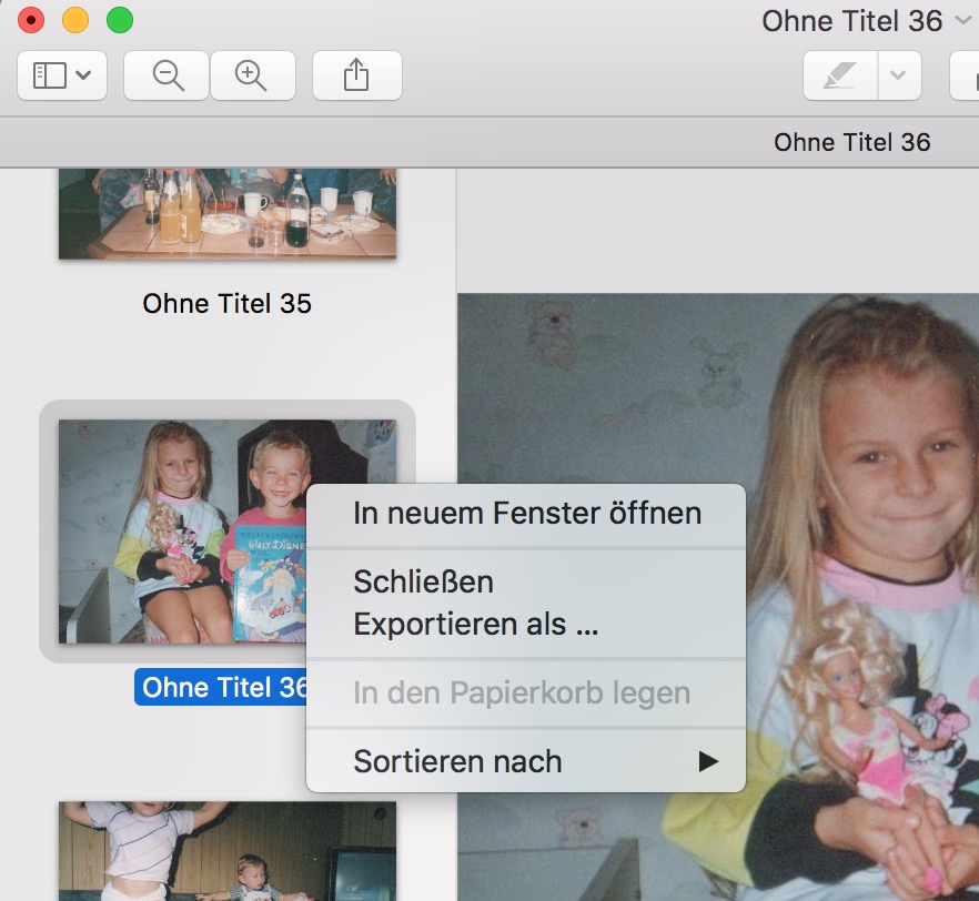 im Vorschau-Fenster habe ich mehrere zwischengespeicherte Bilder als Miniaturen in der Seitenleiste geöffnet. Leider kann ich diese nicht alle auf einmal schließen, ohne sie zu speichern.