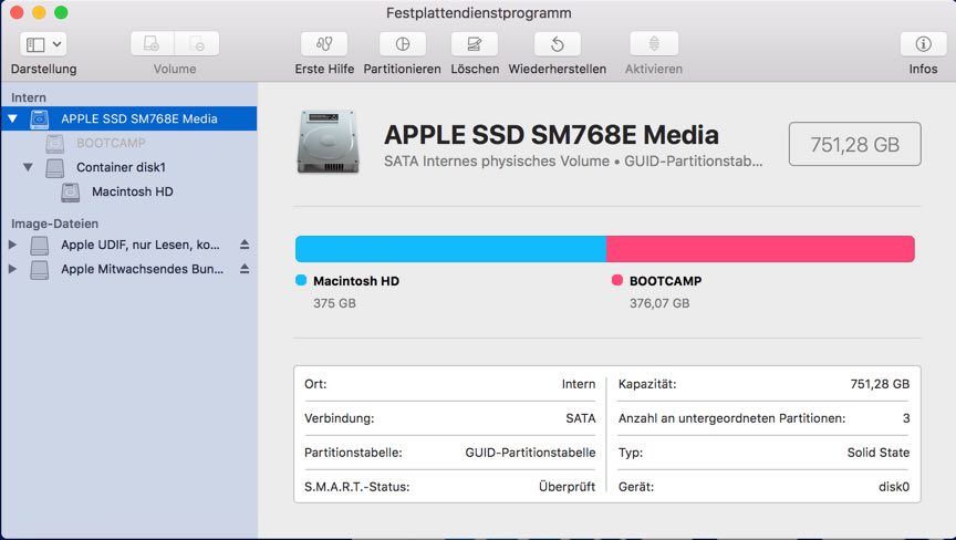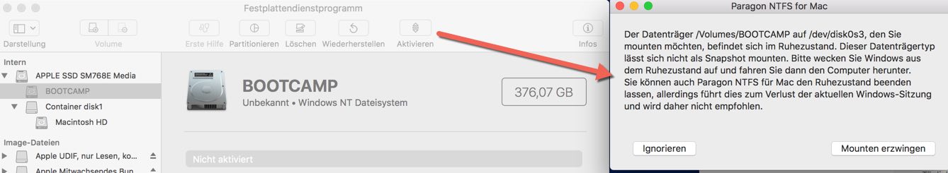 Bootcamp-Partition nicht aktiviert
