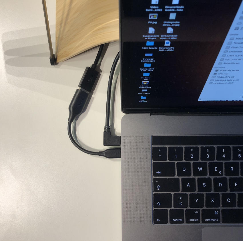 Ein zweites Foto zeigt den Zustand, den ich mir wünschen würde. Hier sind übrigens die beiden nicht wirklich funktionierenden Adapter/Kabel angeschlossen.
