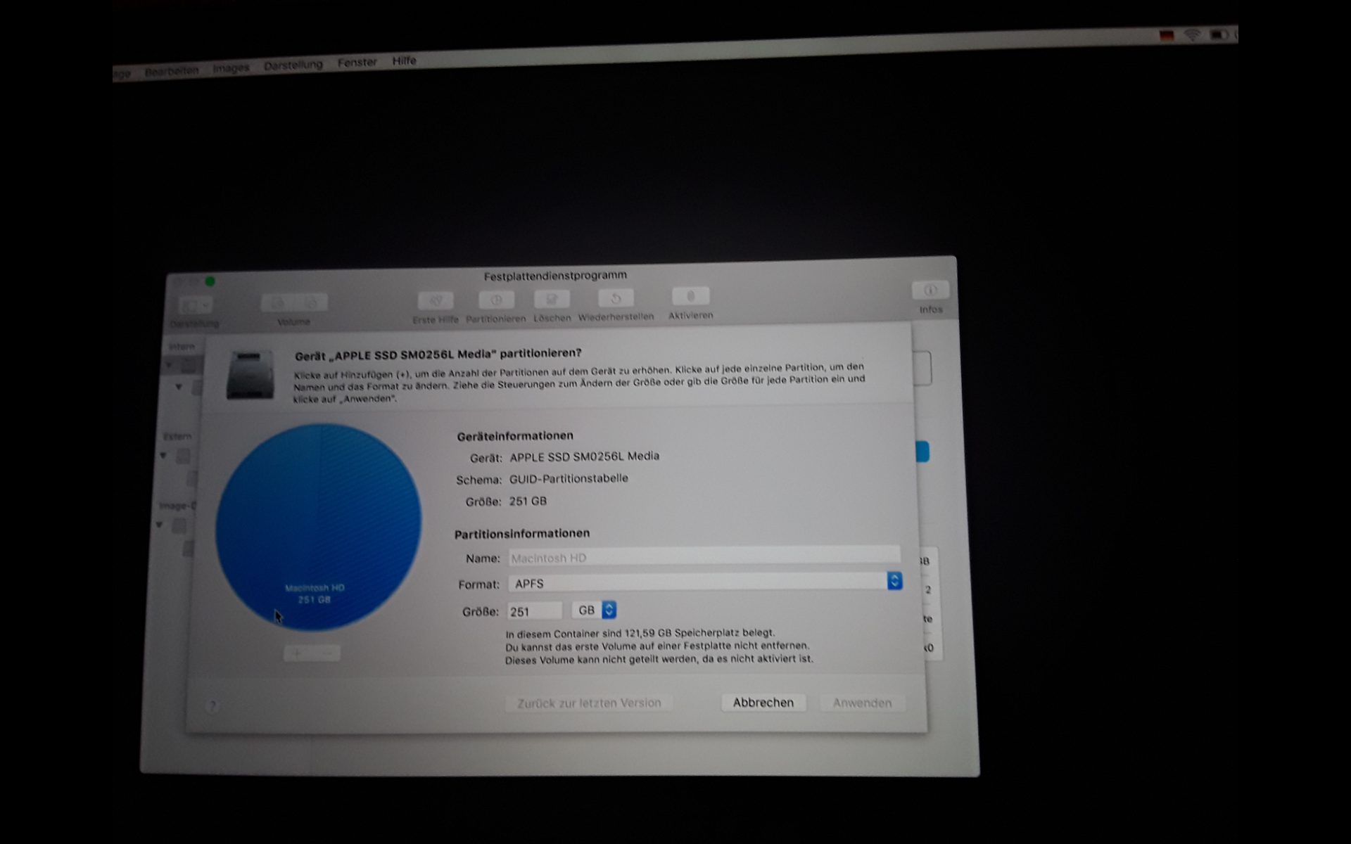 Ich bin von high Sierra ziemlich enttäuscht und will zurück zu Sierra. Ich würde Die M.HD. gerne Partitionieren. Bin jetzt seid zwei tagen dabei es zu probieren aber nix funktioniert.