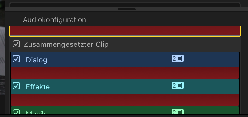 anzuzeigen. Dies gilt für Rollen und Subrollen in der Timeline, als auch für die