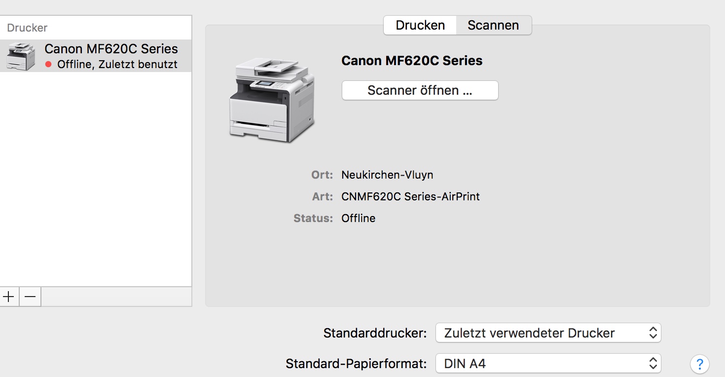 Der "Übersichts-Scan", bei dem eine Vorschau gescannt wird, klappt problemlos und auch das Dokument wird in der Vorschau angezeigt. Wenn jedoch der "richtige" Scan durchgeführt werden soll, bricht dieser am Ende des Scanvorgangs mit der äußerst hilfreichen Fehlermeldung "Der Scanner hat einen Fehler gemeldet. Beim Scannen ist ein Fehler aufgetreten" ab.