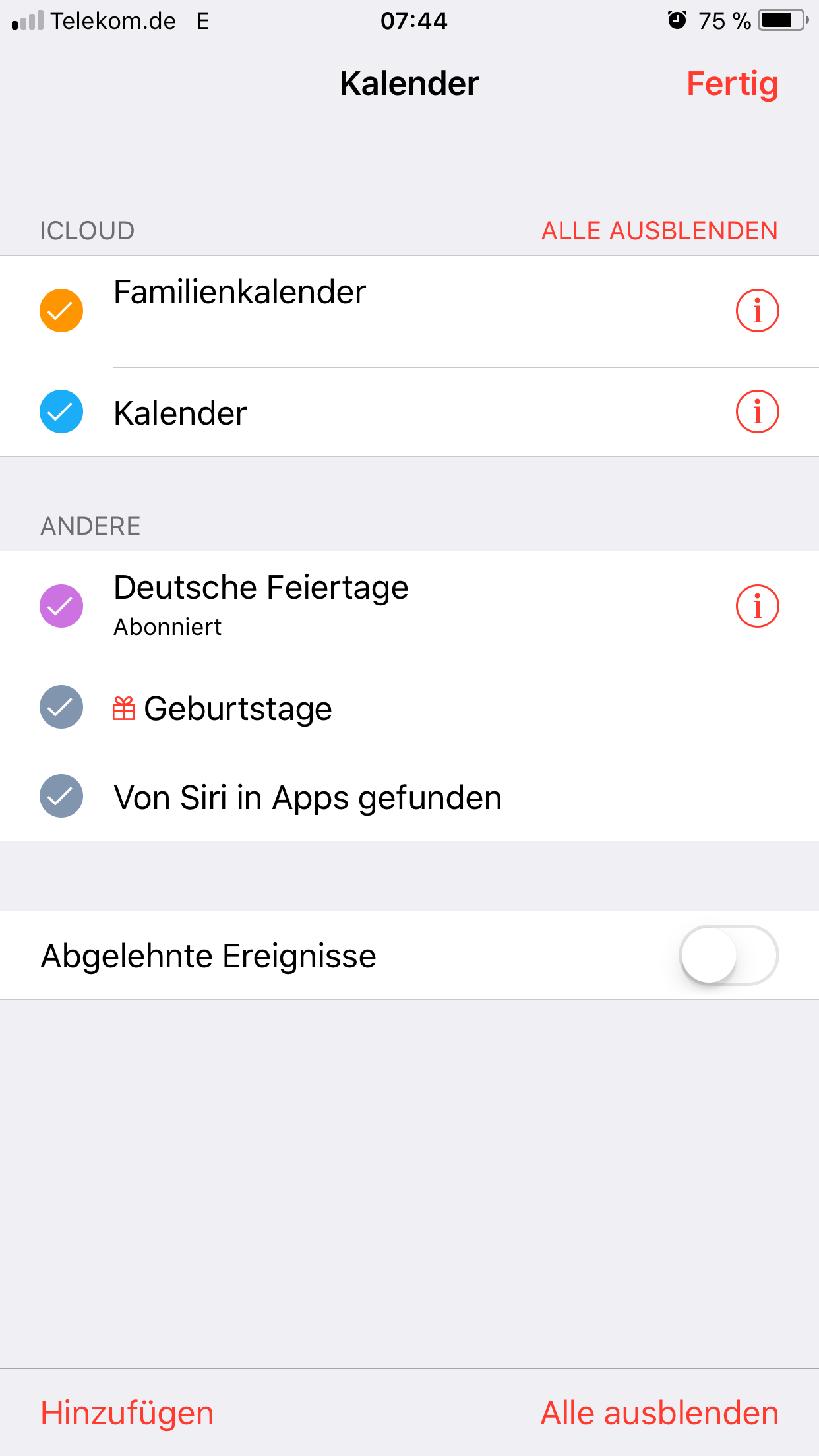 iPhones, ganz frisch aufgesetzt, alles frisch installiert. Auf beiden war der Kalender