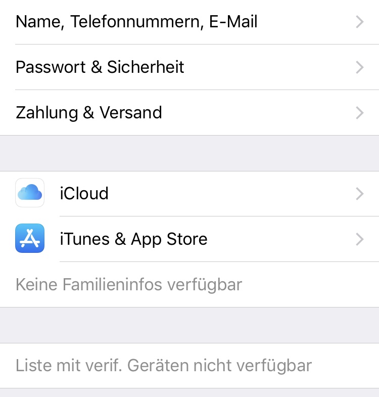 Einstellung --> auf Namen klicken, steht bei mir unter "iCloud" und "iTunes & App Store" nur die Aussage "Keine Familieninfos verfügbar".