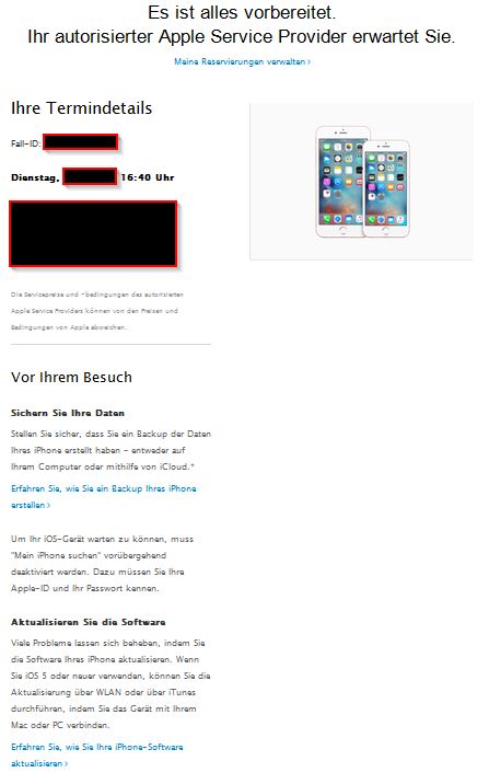 Den Termin und die Bestätigungsmail habe ich auch schnell erhalten mit dem Hinweis,