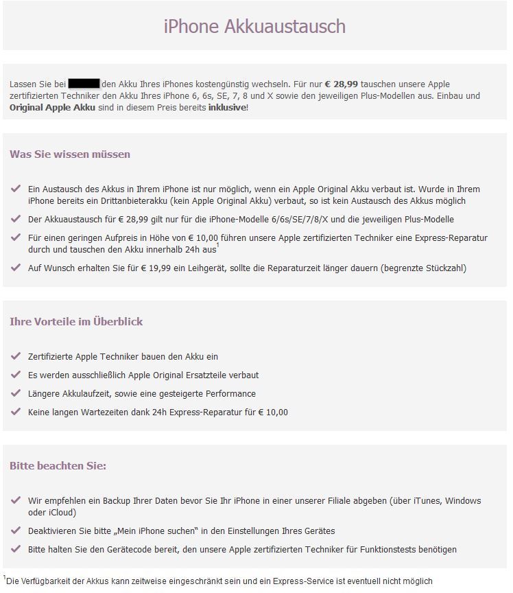 trotz Eigenwerbung das diese Firma selber den Akkutausch sogar für 28,99€ machen
