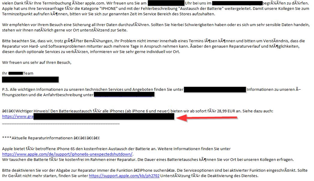 Beziehe ich mich auf den vereinbarten Termin für den Akkutausch und bekomme vom Service-Techniker