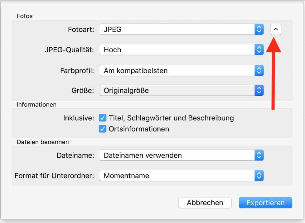 Wenn ich Bilder aus meiner Foto-Mediathek auf den Schreibtisch des Mac OS kopiere, werden diese auf dem Schreibtisch komprimiert eingefügt. Beispiel: Ich mache ein Foto mit dem iPhone und speichere es in der Foto-Mediathek. Am Mac sehe ich das Bild mit einer Größe von 2MB. Nach dem kopieren des Bildes auf den Schreibtisch hat dieses nur noch 270KB. Selbes gilt für iCloud Drive - auch hier werden Bilder nur komprimiert abgelegt.