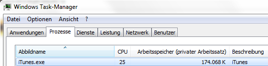Man sieht zwar nicht direkt einen Fortschritt, aber iTunes scheint im Hintergrund doch zu arbeiten.