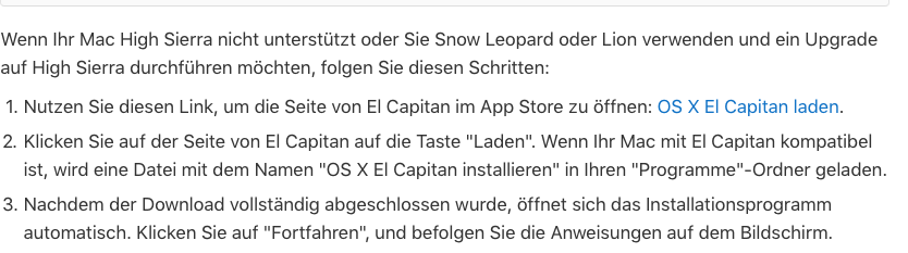 Hast du bereits probiert den Link für El Capitan über den Support Artikel zu öffnen?