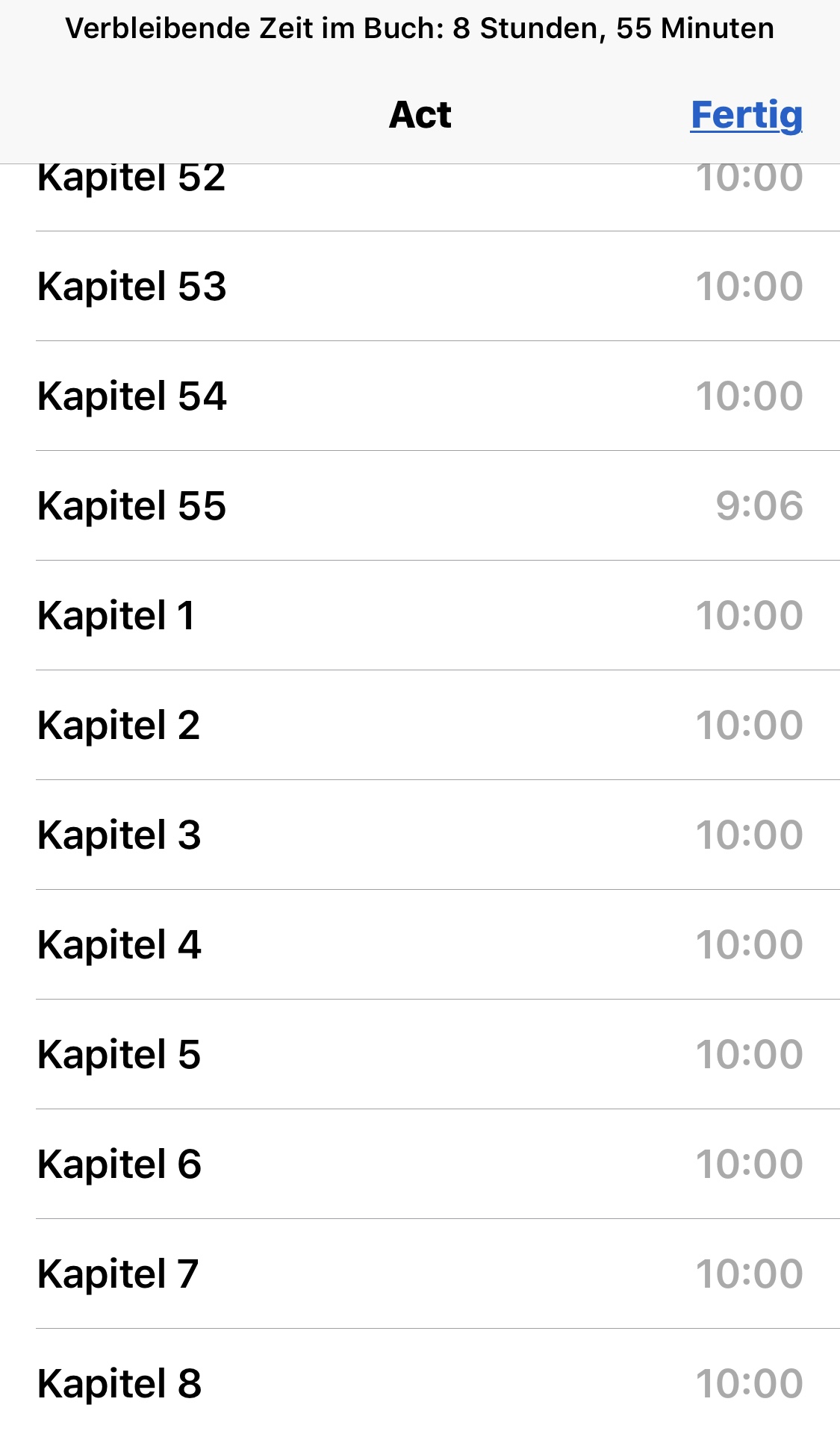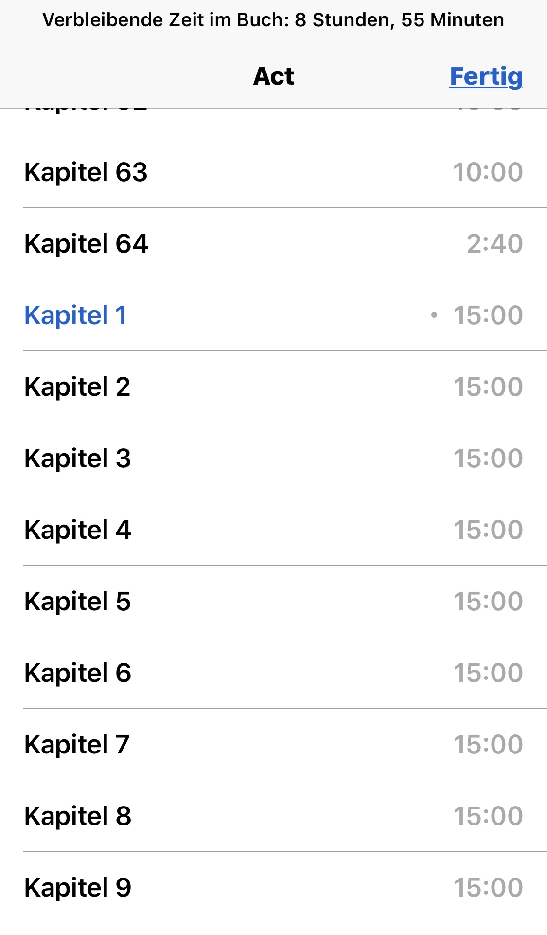 Ich habe einige meiner Hörbücher (M4A.Datei mit Kapiteln) auf mein iPhone (8 plus) übertragen und dabei festgestellt, dass sie leider nicht so wie auf meinem iPod Classic dargestellt werden.