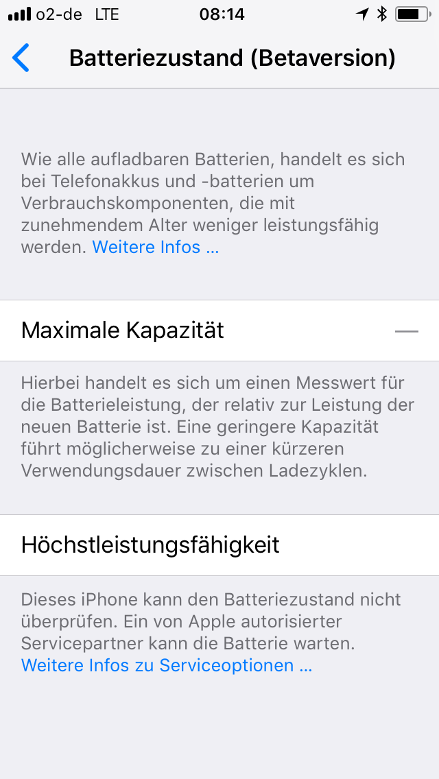 aus: iPhone: Batterie und Leistung - Apple SupportBatteriezustand (Betaversion)