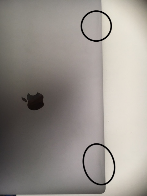 Ich habe im August letzten Jahres ein MacBook Pro (2017) gekauft. Ich habe mehrere Apple Geräte im Haus, da ich einfach mit der Qualität und Leistung immer hoch zufrieden war. Daher habe ich beschlossen gut 3000€ in die Hand zu nehmen um mir ein MacBook zu kaufen. Nun habe ich allerdings im April diesen Jahres auf der Displayrückseite zwei Dellen entdeckt, die sind auf beiden Seiten zu sehen und haben dort die exakt gleiche Form. Daher ist davon auszugehen, dass es irgendein Verarbeitungsfehler sein muss. Denn bei unsachgemäßer Benutzung ist die Wahrscheinlichkeit gleich null, dass die Dellen an den jeweils gleichen Stellen entstehen und exakt symmetrisch sind.