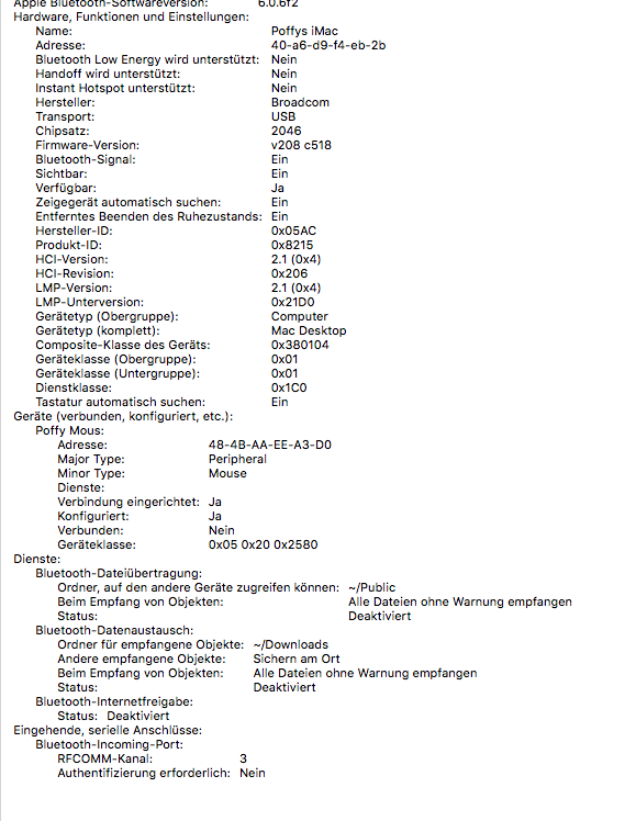 Bluetooth findet keine Geräte mehr nach Neuinstallation macOS High Sierra