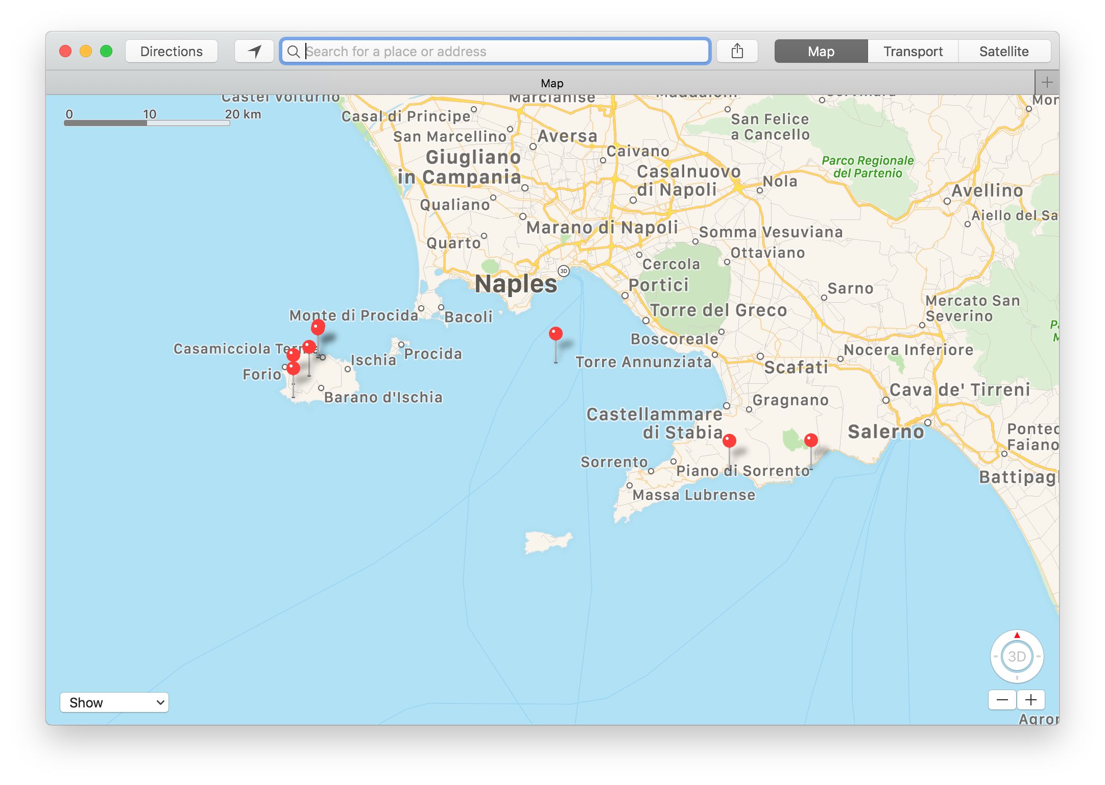 Selektiert man mehrere Fotos, so werden einzelne Stecknadeln wiederum nur auf einer kleinen Karte angezeigt.