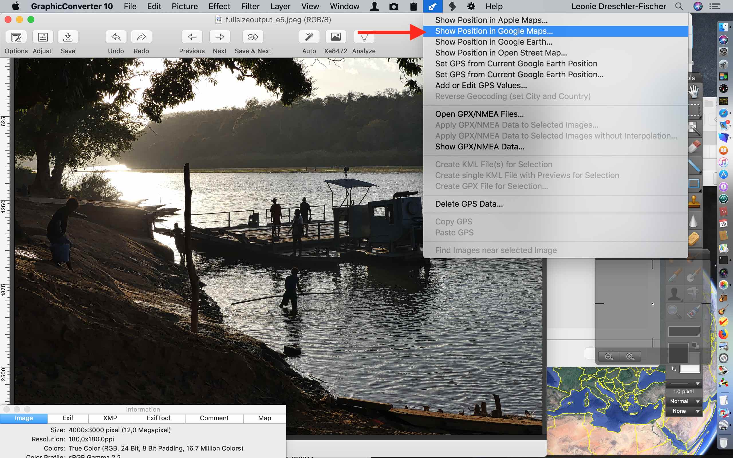Bei Fotos mit Ortsinformationen wird mit rechtem Mausklick auf Informationen eine kleine Karte angezeigt.