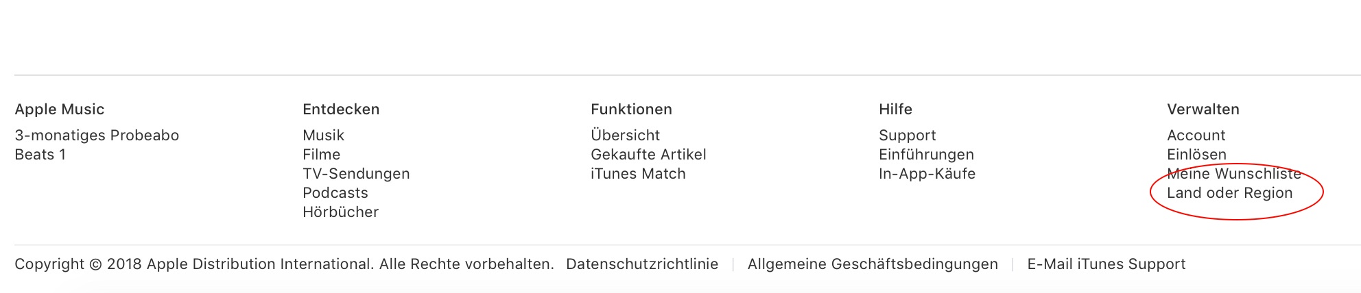 Die Änderung nimmst Du in iTunes ganz unten im Hauptfenster vor, einfach unter Land oder Region: