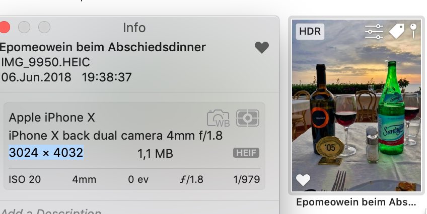Die von mir gemachten Bilder haben eine Größe von 4032 x 3024 bei 1,2 MB Dateigröße.