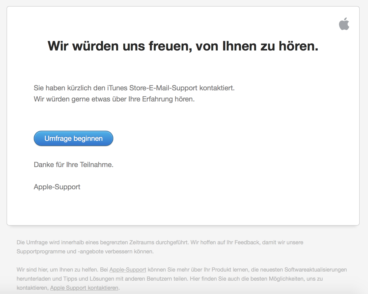 Betreff: Ihre letzte Erfahrung mit dem Apple-Support