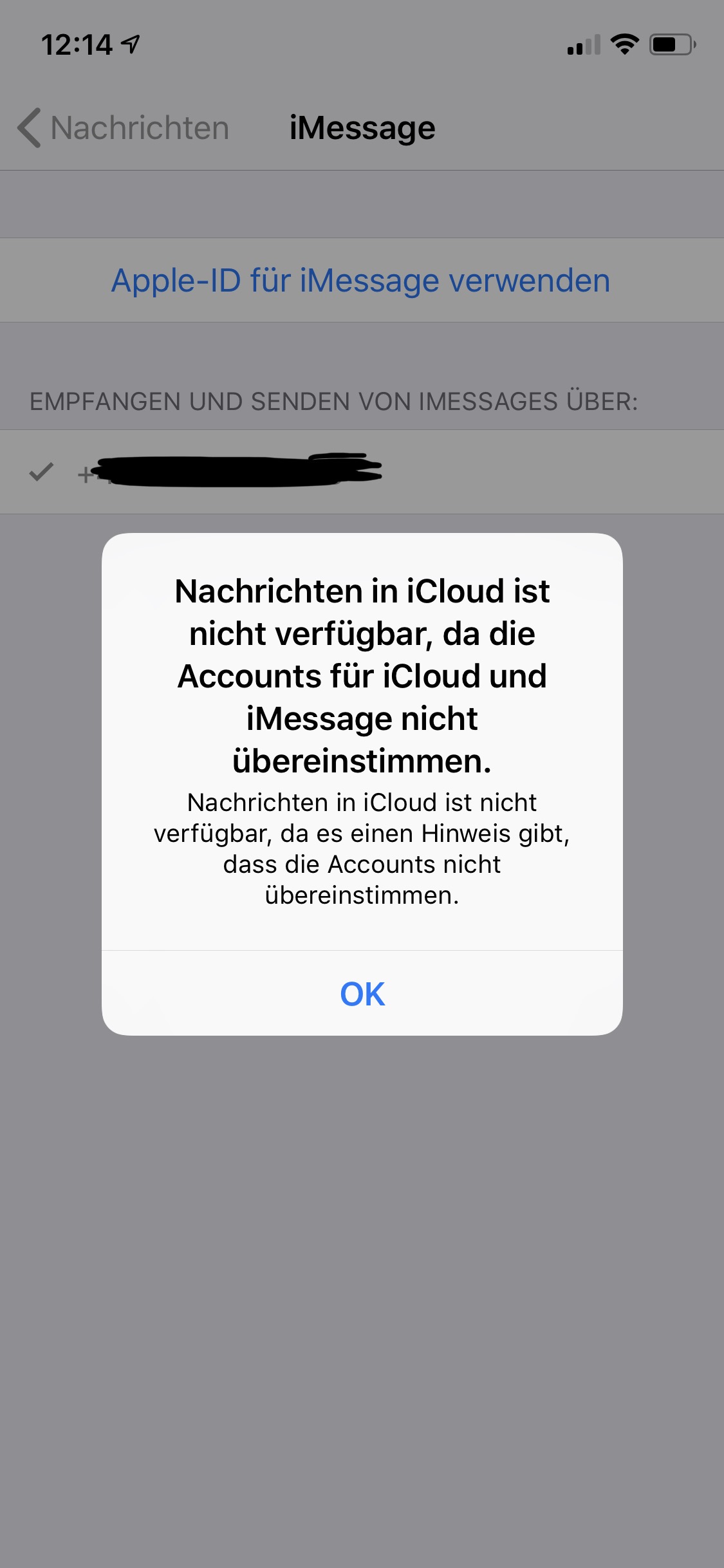 Es wird immer wieder angezeigt, das die Aktivierung fehl schlug und das die Accounts für iCloud und iMessage nicht übereinstimmen.