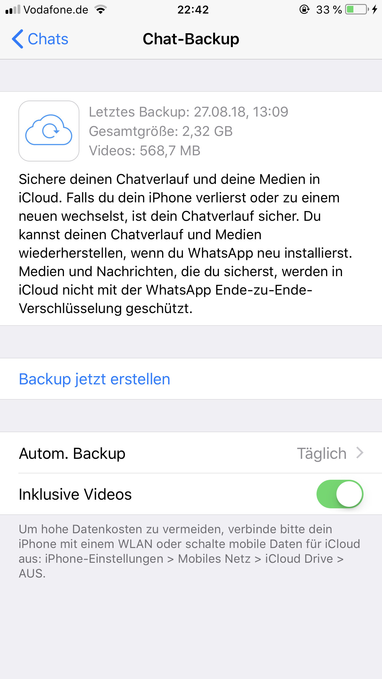 Was passiert wenn du auf "Backup jetzt erstellen klickst"?