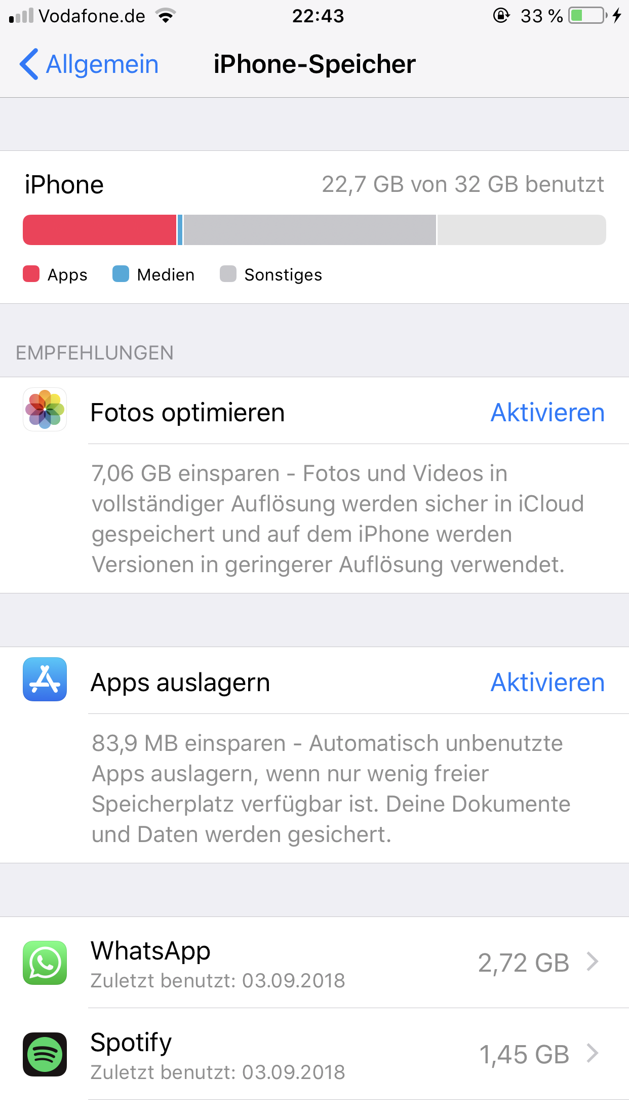 Speicher angeblich voll obwohl noch genug frei??!